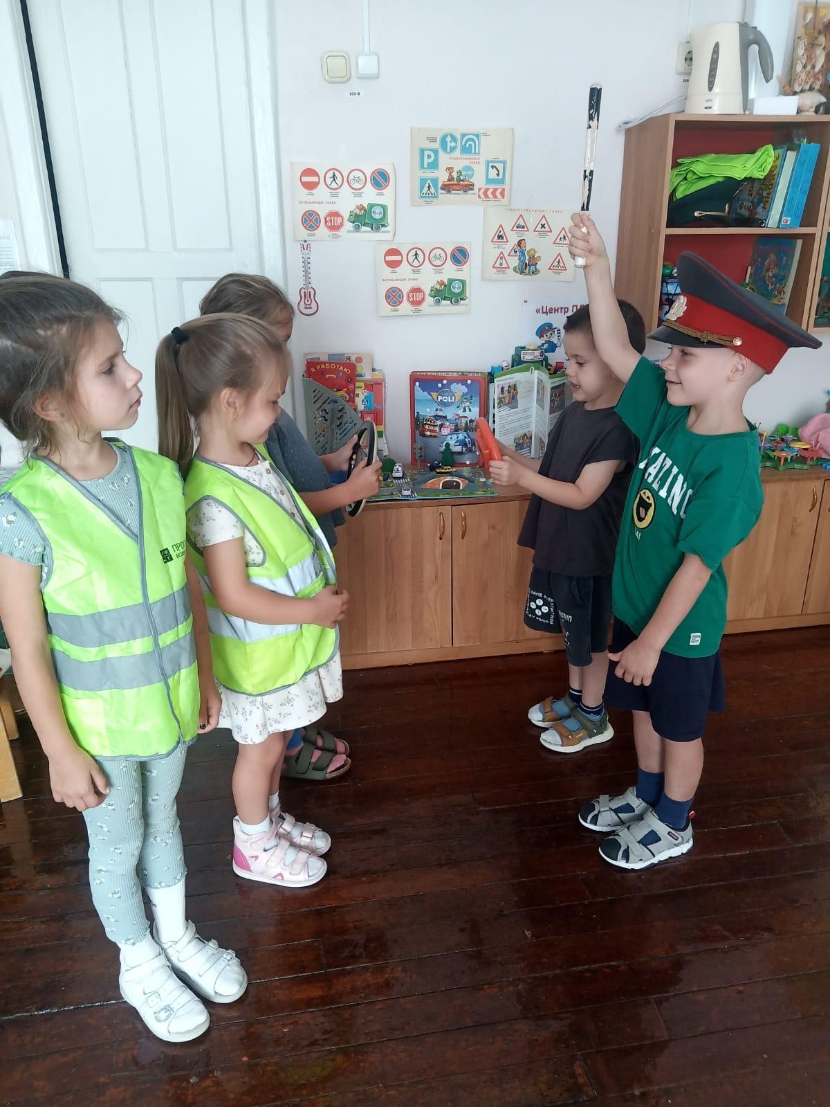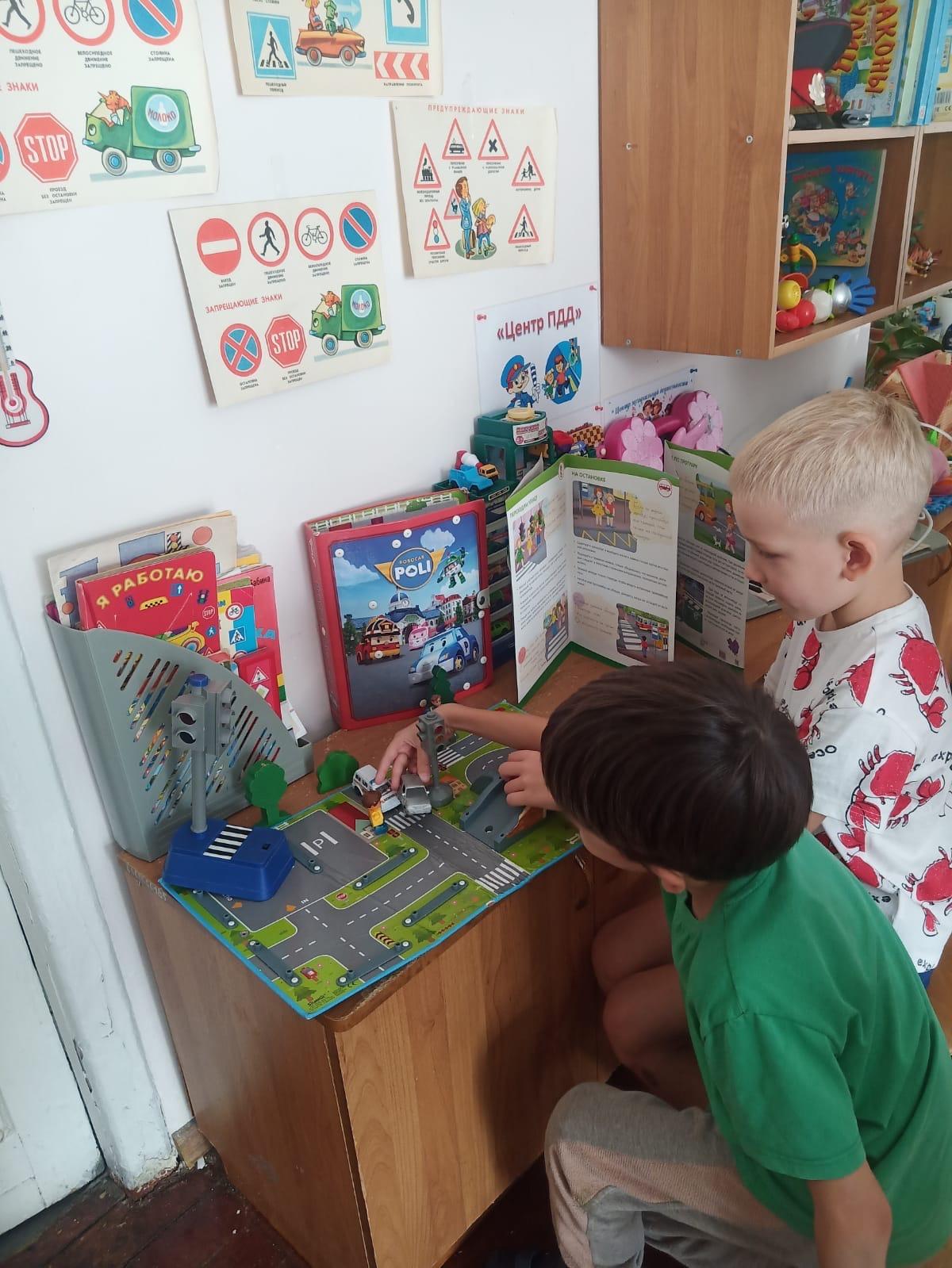 В старшей группе № 1 во время бесед и рассматривания иллюстраций с дорожными ситуациями закрепляли с детьми такие понятия, как «дорога», «транспорт», «светофор», «пешеход». Ребята с удовольствием играли в дидактические игры: «Сложи светофор», «На чём ездят люди», «Тротуар и проезжая часть», «Дорожные знаки», «Узнай знак».